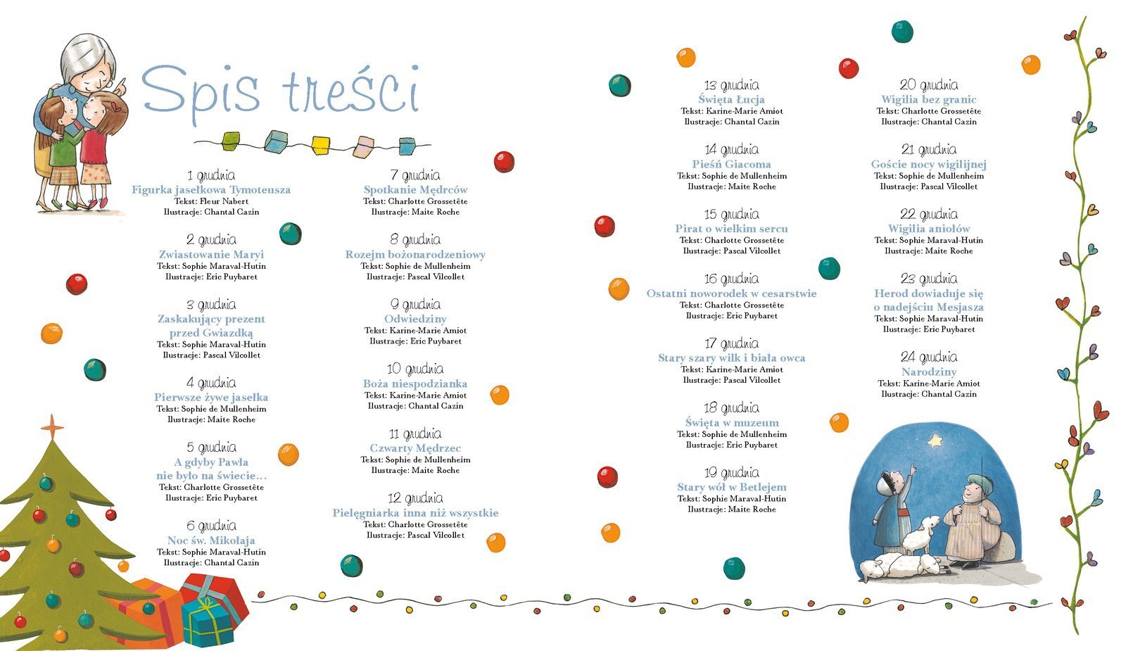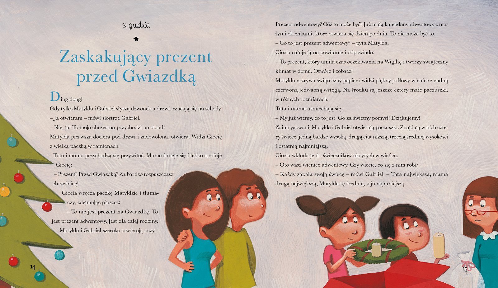 Ta piękna książka dla dzieci jest kolekcją 24 zupełnie wyjątkowych opowieści adwentowych i wigilijnych, które poniekąd pełnią funkcję kalendarza adwentowego.