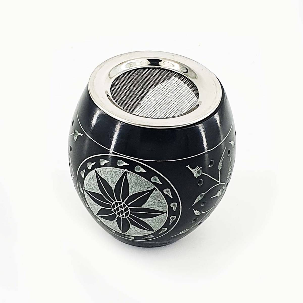 Kadzielnica wykonana z marmuru, idealnie pasująca do wystroju mieszkania jak również do celebracji religijnych i sakralnych. Bogato rzeźbiona i zdobiona w motywy kwieciste i roślinne. Zawiera miejsce na świeczkę i na węgielek.