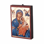 Ikona wykonana metodą sitodruku, za pomocą tempery jajecznej (oryginalnym medium w ikonopisarstwie)