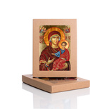 Ikona religijna przedstawia wizerunek Matki Bożej z Dzieciątkiem Jezus. Wszystkie ikony dostępne w naszej ofercie wykonane są z najwyższej jakości materiałów. Drewno wykorzystywane do produkcji ikon dobierane jest w niezwykle staranny sposób. Wizerunek naniesiony na ręcznie złoconą deskę. Produkt wspaniale sprawdzi się jako jedyny w swoim rodzaju upominek dla najbliższych.