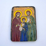 Wizerunki świętych i aniołów są starannie malowane na powierzchni ikony, przy użyciu precyzyjnych pędzli i artystycznych technik, co sprawia, że każdy detal jest dokładnie oddany. Kolorystyka i kompozycja są starannie dobrane, aby stworzyć harmonijny i inspirujący obraz.