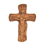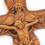Krzyż gipsowy przedstawiający Trójcę Świętą - Ojca, Syna i Ducha. Starannie wykonany; posiada kółeczko do powieszenia na ścianie.