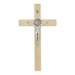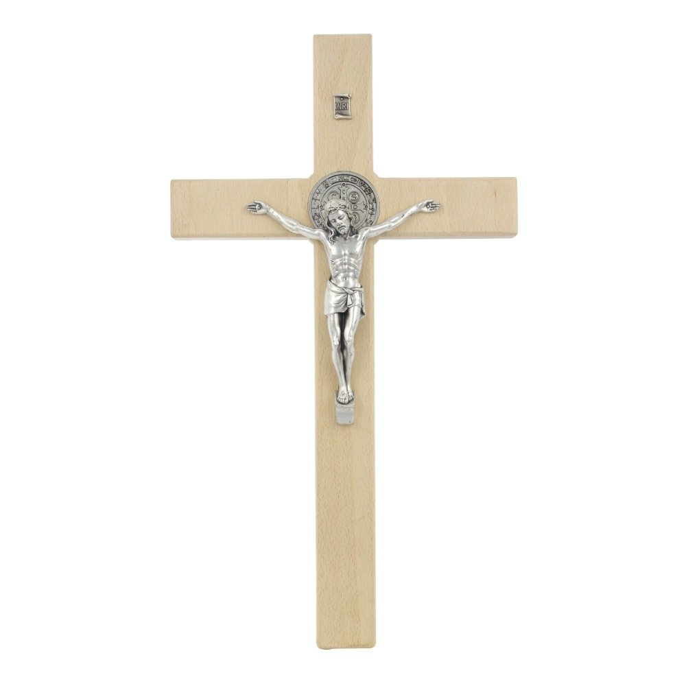 • Drewniany krzyż z medalikiem św. Benedykta patrona egzorcystów, patrona europy i patrona dobrej śmierci. Wielkiego świętego. Krzyż cięty z jednego kawałka.