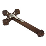 Jest to drewniany krzyż wiszący na ścianę. Krzyż wykonany z litego drzewa. Jest to nasza własna produkcja według własnego projektu.