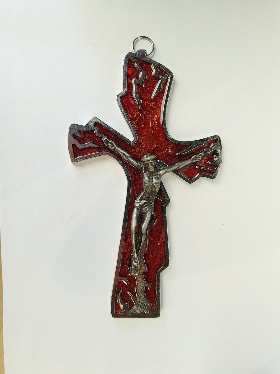 Krzyż posiada kółeczko do zawieszenia na ścianie.