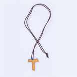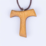 • Naszyjnik - krzyżyk Tau - drewno - rzemyk