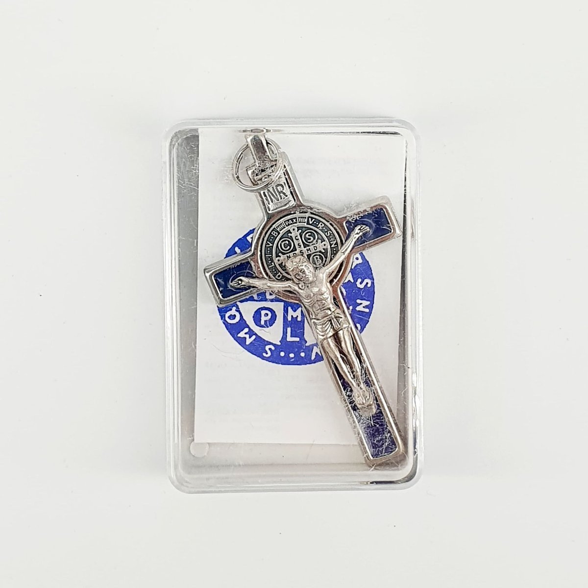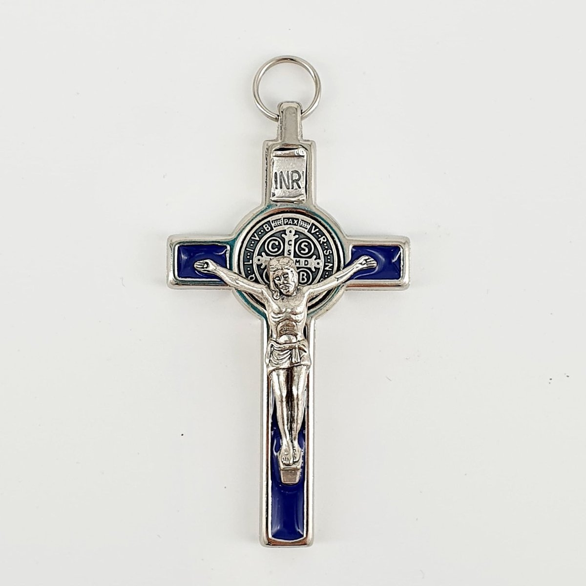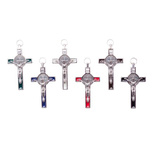 Krzyżyk w kolorze srebrnym z medalem Św. Benedykta. Wypełnienie krzyża dostępne w 8 kolorach.