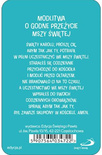 Jak dobrze przygotować się do Mszy Świętej? Ta karta z modlitwą będzie doskonałą pomocą! Niewielka i trwała, może być noszona w portfelu, etui na dokumenty czy włożona do Biblii. To doskonały pomocnik zwłaszcza dla młodych chrześcijan.