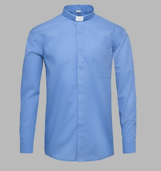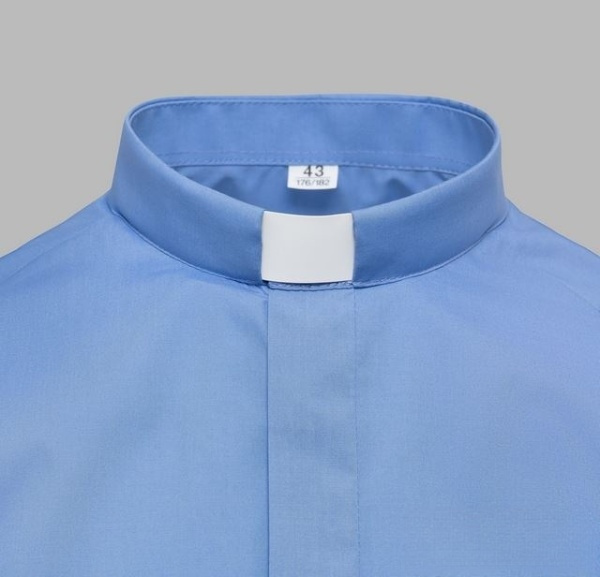 Koszula kapłańska z koloratką DŁUGI RĘKAW - niebieska
