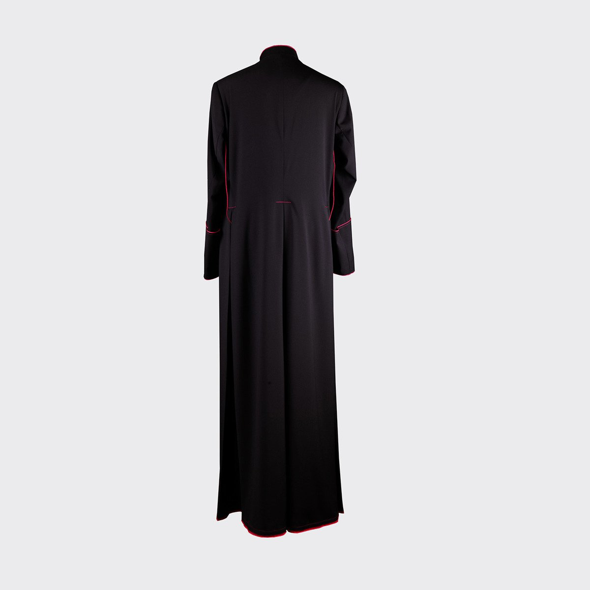 Sutanna uszyta w polskim zakładzie krawieckim z ponad pięćdziesięcioletnim doświadczeniem w szyciu odzieży kapłańskiej i szat liturgicznych.