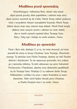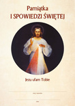 Pamiątka I Spowiedzi Świętej z wizerunkiem Jezusa Miłosiernego z obrazu Wileńskiego posiada dwie modlitwy - modlitwa przed spowiedzią świętą i modlitwa po spowiedzi świętej. Pamiątka ma format A6 (105x148 mm) i drukowana jest na sztywnym papierze. Na przedzie pamiątki jest miejsce na imię i nazwisko dziecka oraz datę spowiedzi. Na drugiej stronie znajduje się miejsce do wpisania nazwy parafii oraz miejsce na podpis kapłana u którego dziecko pierwszy raz się spowiadało.