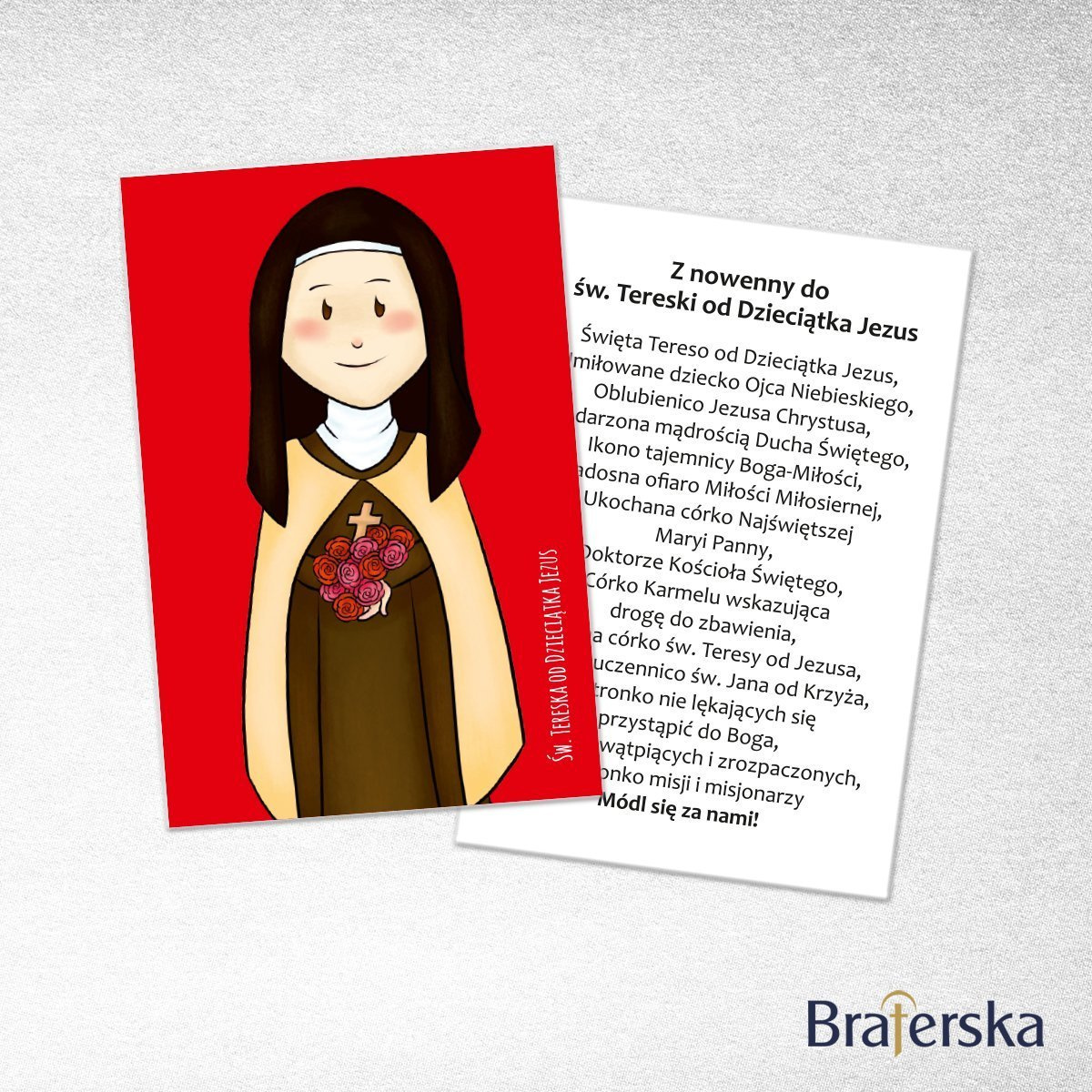 • Dwustronny obrazek dla dzieci św. Teresa od Dzieciątka Jezus z modlitwą. Komplet zawiera 50 sztuk obrazków o wymiarze 70x105 mm. Papier - kreda 350g, foliowany dwustronnie.
