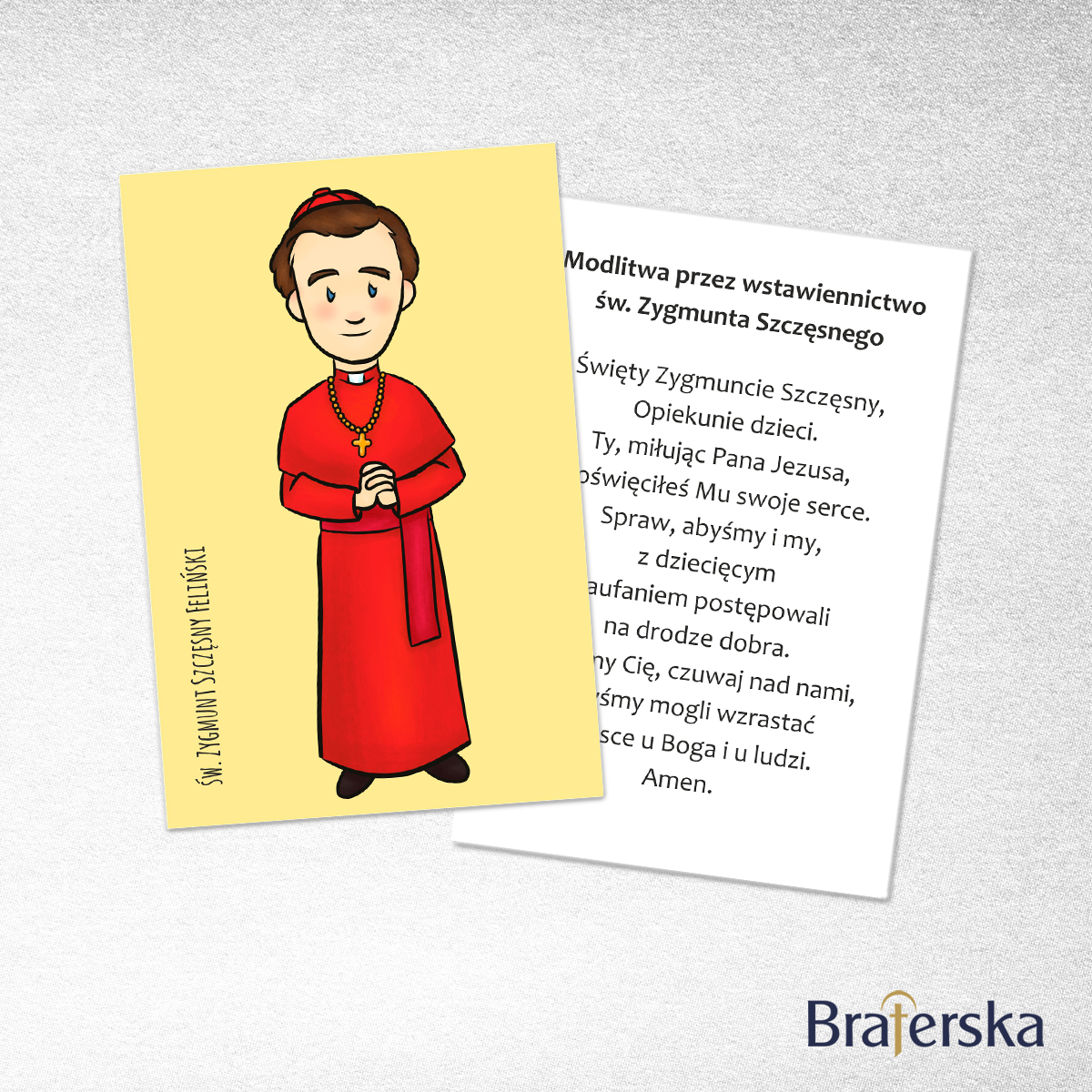 • Dwustronny obrazek dla dzieci św. Zygmunt Szczęsny Feliński. Komplet zawiera 50 sztuk obrazków o wymiarze 70x105 mm. Papier - kreda 350g, foliowany dwustronnie.