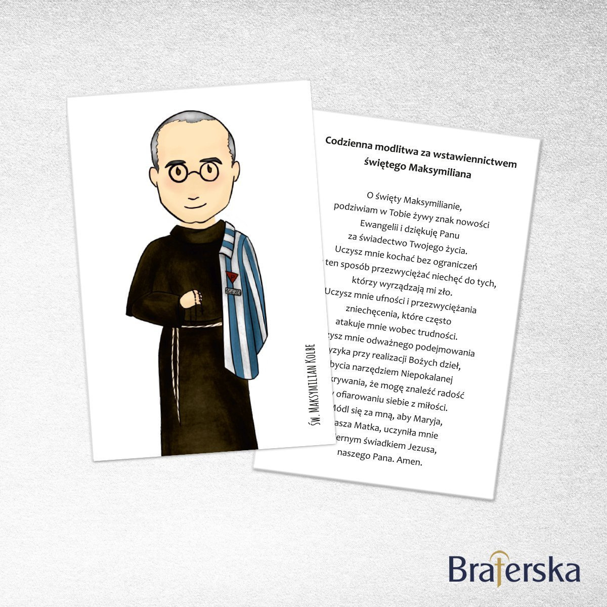 Obrazki dla dzieci z wizerunkiem św. Maksymiliana Kolbego z modlitwą to doskonały pomysł dla dzieci.