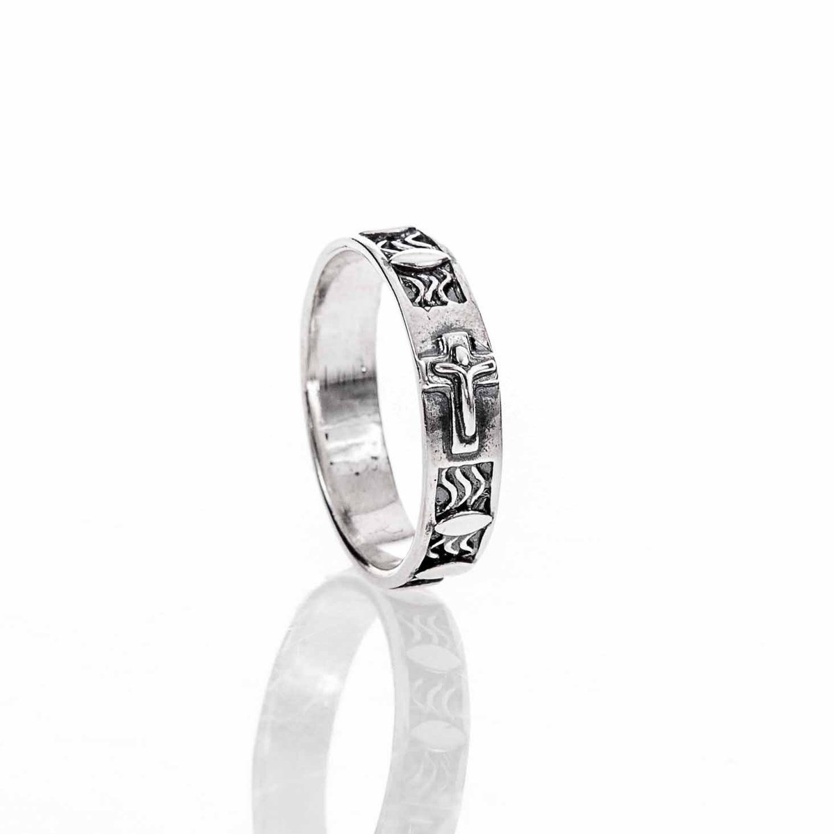 Dziesiątka różańca na palec krzyżyk z pasyjką - srebrny