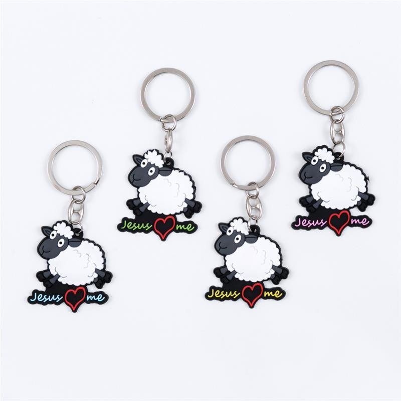• Owieczka z  NIEBIESKIM napisem "Jesus loves me" brelok gumowy