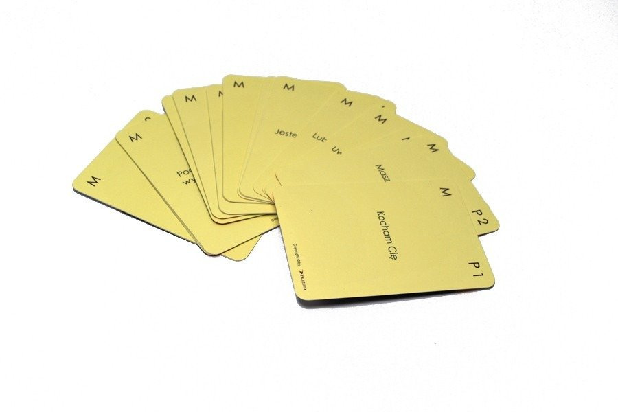 7. Odsłanianie kart rozpoczyna się od karty „mniej ważnej” z kategorii Pozytywy. Małżonkowie wręczają sobie po jednej karcie i jeżeli nie mają potrzeby omówienia, przechodzą do dalszych odsłon.
