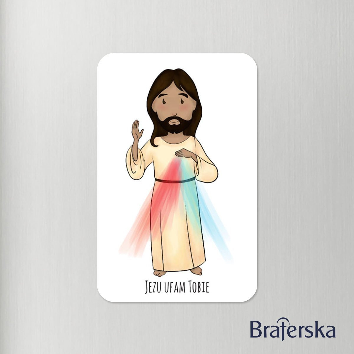 • Magnes z rysunkowym wizerunkiem Jezusa Miłosiernego.