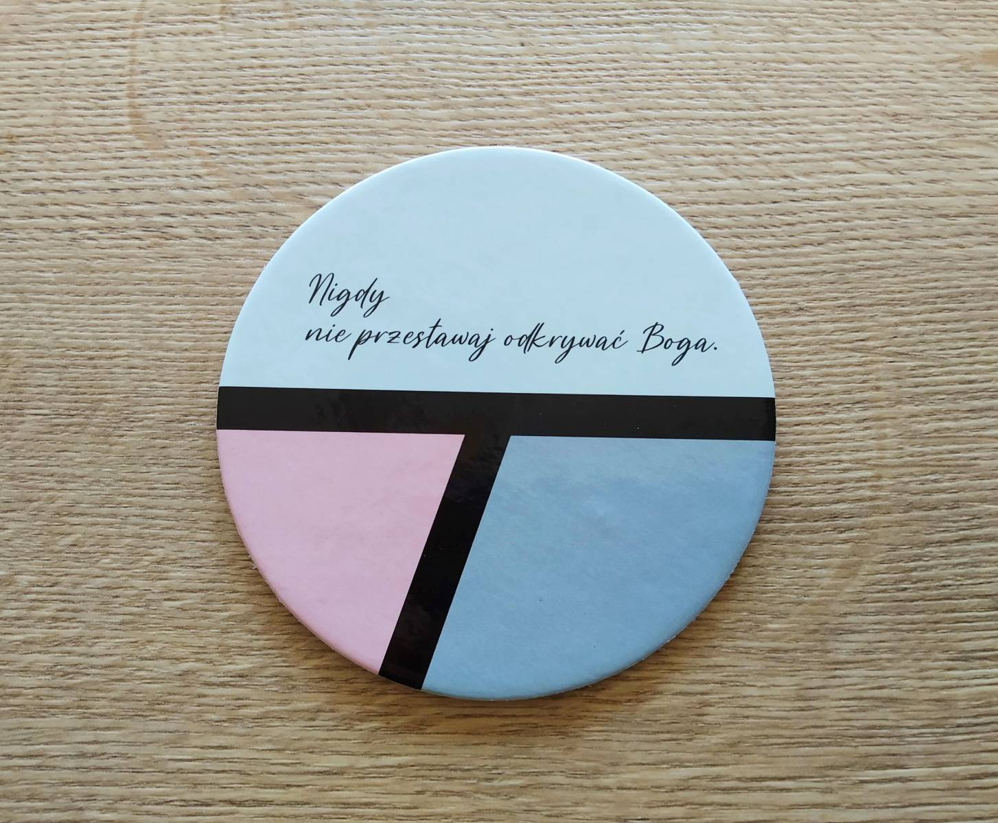 Podkładka korkowa w modnych koralach szaro, miętowo, różowe o średnicy 95 mm. Doskonałe uzupełnienie każdego stołu, praktyczna w codziennym użytkowaniu, ponieważ chroni powierzchnie stołu przed zarysowaniem. Treści widoczne na podkładkach inspirują, każdego dnia nas i naszych najbliższych.