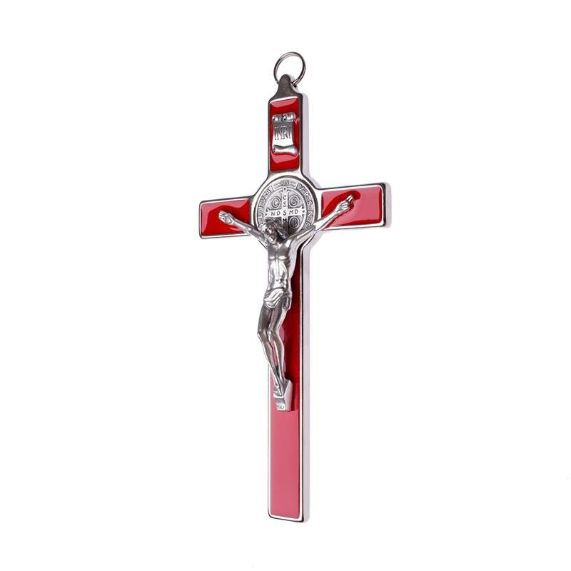 Krzyżyk w kolorze srebrnym z medalem Św. Benedykta. Wypełnienie krzyża dostępne w 7 kolorach.