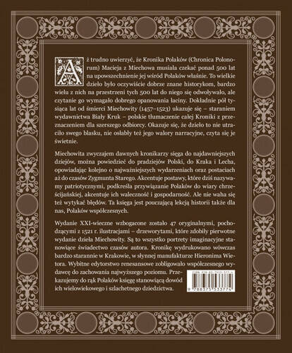Aż trudno uwierzyć, że Kronika Polaków (Chronica Polonorum) Macieja z Miechowa musiała czekać ponad 500 lat aż zostanie przetłumaczona na język polski. To wielkie dzieło było oczywiście dobrze znane historykom – wielu z nich odwoływało się do jego treści – ale czytanie go wymagało dobrego opanowania łaciny. Dokładnie pół tysiąca lat od śmierci Miechowity (1457–1523) ukazuje się – staraniem wydawnictwa Biały Kruk – polskie tłumaczenie całej Kroniki z przeznaczeniem dla szerszego odbiorcy. Okazuje się, że dzieło to nie utraciło swego blasku, nie osłabły też jego walory narracyjne, czyta się je świetnie.