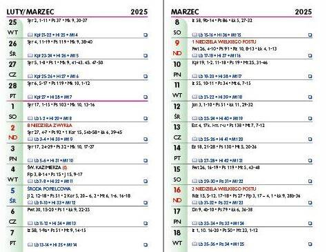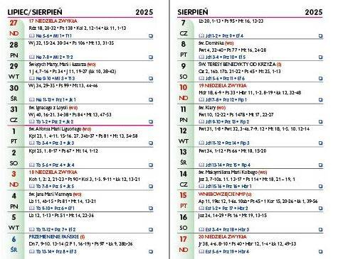 Dodatkowy atut kalendarza to jego niewielkie wymiary, dzięki którym można włożyć go do Pisma Świętego, aby rozważać Słowo Boże wraz z całym Kościołem.