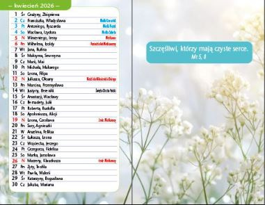 Potrzebujesz małego kalendarza, dzięki któremu będziesz planować z wiarą i działać z miłością w każdym dniu 2026 roku? Wybierz kalendarz kieszonkowy – poręczny, lekki i funkcjonalny.