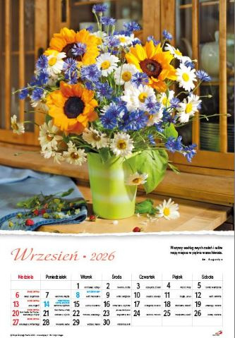 Dodatkowy atut kalendarza to wymiary: 33,50 x 48,50 cm, które czynią kalendarz czytelnym i wygodnym w użyciu.