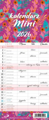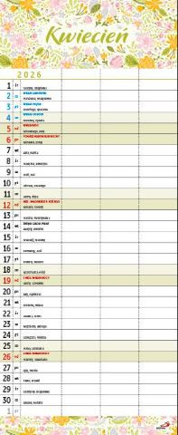 Kalendarz ma wymiary 14,00 x 34,00 cm. Podobny kalendarz dla rodzin możesz kupić również w formacie dużym oraz małym.