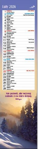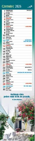 Kalendarz wyróżnia oryginalny, praktyczny format – 10,50 x 42,00 cm, dzięki któremu powiesisz go nawet na niewielkiej przestrzeni.