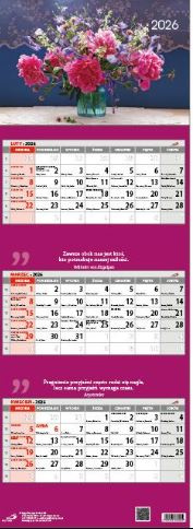 Atut tego kalendarza to czytelny, przejrzysty wygląd, dzięki któremu bez trudu odnajdziesz każdy ważny termin. Trójdzielny układ daje wgląd w trzy następujące po sobie miesiące bez konieczności przekładania stron, ułatwiając planowanie dni i tygodni. Kalendarz posiada pasek z okienkiem do zaznaczania bieżącej daty oraz otwór ułatwiający zamocowanie kalendarza.