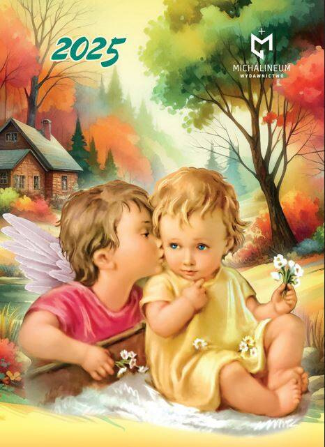 Kalendarz ścienny na rok 2025, dedykowany dla dzieci z pięknymi anielskimi ilustracjami na każdy miesiąc.