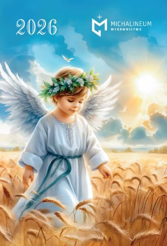 Kalendarz ścienny na rok 2026, dedykowany dla dzieci z pięknymi anielskimi ilustracjami na każdy miesiąc.