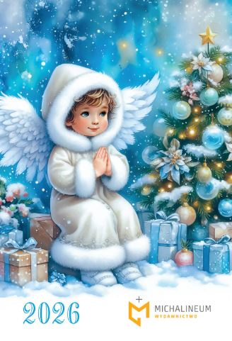 Kalendarz ścienny na rok 2026, dedykowany dla dzieci z pięknymi anielskimi ilustracjami na każdy miesiąc.