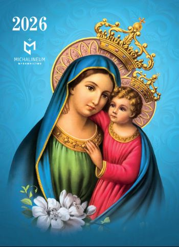 Kalendarz ścienny na 2026 rok z wizerunkami Matki Bożej na każdy miesiąc.