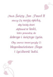 Kartka z wizerunkiem świętego to doskonała okazja, by w wyjątkowy sposób życzyć bliskiej osobie opieki św. Jana Pawła II – z okazji urodzin, imienin, bierzmowania, chrztu, I Komunii Świętej, a także jako duchowe wsparcie w trudnym czasie czy ważnym momencie życia.
