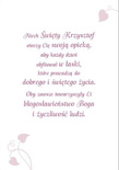 Święty Krzysztof – młodzieniec żyjący w III wieku, pochodzący z północnej Afryki, siłą wcielony do rzymskich legionów, gdzie przyjął chrzest i niebawem zginął śmiercią męczeńską. Odznaczał się heroiczną odwagą, siłą ciała i ducha oraz konsekwencją w podążaniu drogą wiary. Patron kierowców, podróżnych, pielgrzymów, turystów, marynarzy, a także orędownik w śmiertelnych niebezpieczeństwach. Podaruj ten piękny karnet i zawierz mu kogoś, kto jest bliski Twemu sercu!