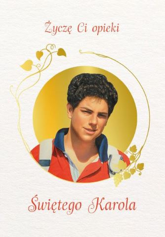 Święty Karol Acutis –nastolatek, pierwszy święty pokolenia Y (milenialsów, zwanych również pokoleniem cyfrowym). Obdarzony darem niezwykłej religijności i poszukiwania prawd wiary już jako dziecko. Boży influencer, pierwszy święty wyniesiony na ołtarze w bluzie i dżinsach. Patron internetu i młodych, którzy poszukują własnej drogi życiowej. Podaruj ten piękny karnet i zawierz mu kogoś, kto jest bliski Twemu sercu!