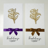 Kolor wstążek to brązowy lub fioletowy. Jeśli nie zostanie wskazany kolor wstążki przy zamówieniu, wtedy kartkę wysyłamy z losowo wybranym kolorem wstążki.