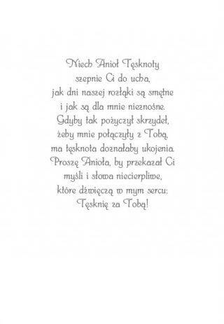 Tęsknisz za kimś dla Ciebie ważnym? Dni rozłąki są dla Ciebie trudne? Poślij Anioła Tęsknoty, by przekazał to, co czujesz! Niech na anielskich skrzydłach sfruną z samego nieba słowa, które dźwięczą w Twoim sercu - Tęsknię za Tobą!