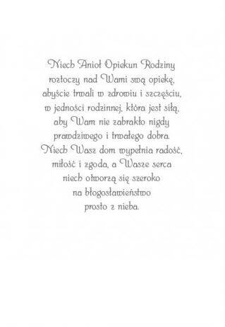 Wewnątrz karnetu zamieszczono piękne życzenia i prośby o wsparcie do wybranego anioła. To słowa, które będą dla obdarowanej osoby jak błogosławieństwo, którym chcesz ją umocnić. Wystarczy tylko podpisać się, choć możesz także dodać słowo od siebie.