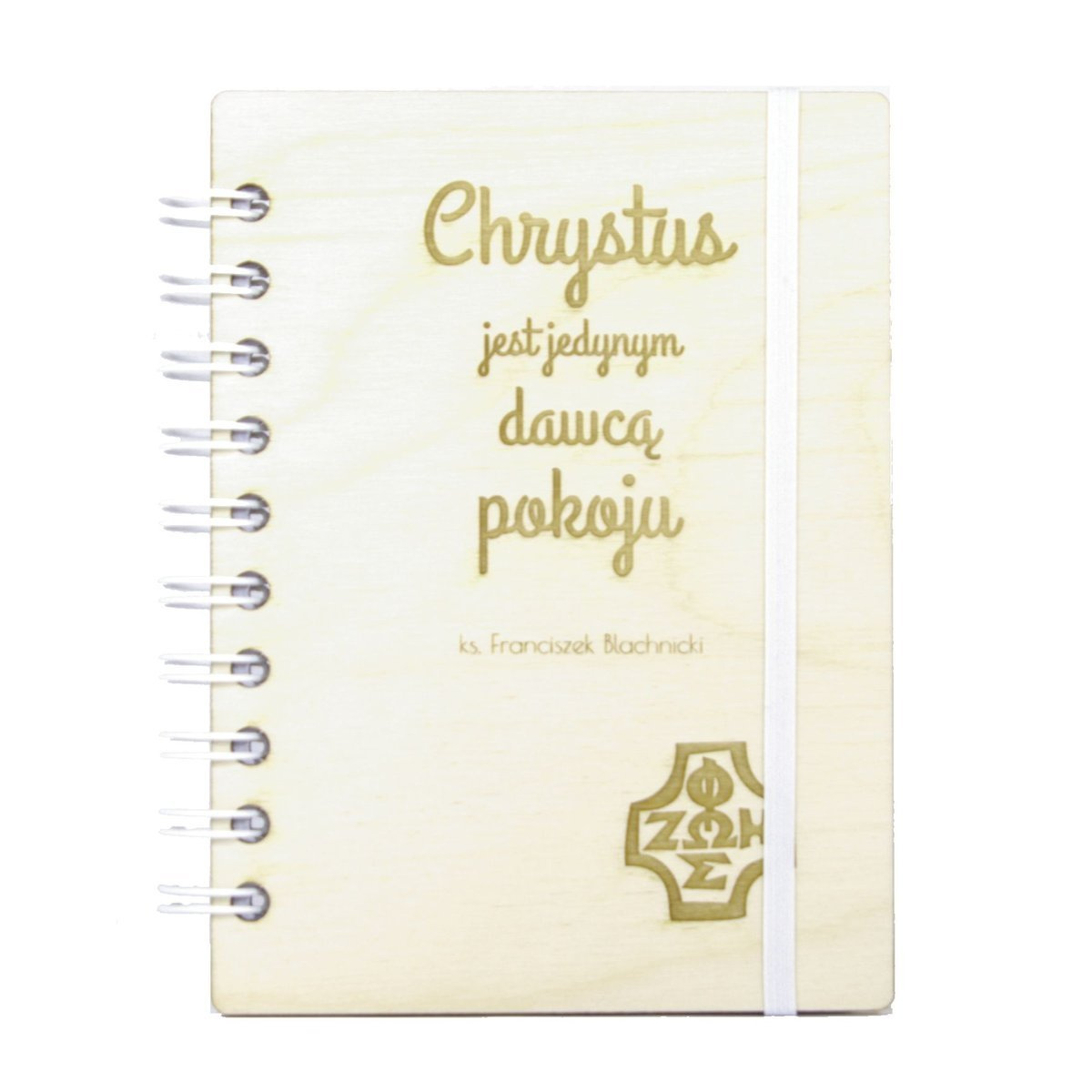 Notes ze znakiem FOS-ZOE oraz cytatem: „Chrystus jest jedynym dawcą pokoju”.