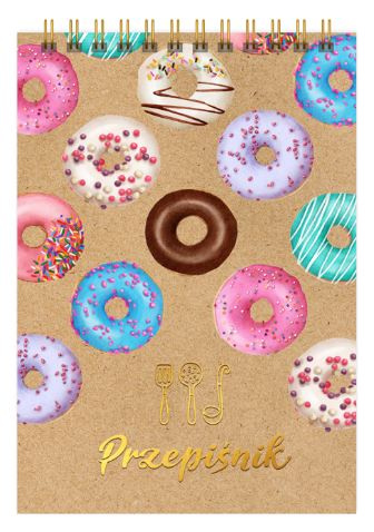 Oryginalny i funkcjonalny „Przepiśnik. Słodko mi” dla pasjonatów gotowania i nie tylko, doskonały do gromadzenia ulubionych przepisów. Podręczny format i kartki łączone za pomocą spirali pozwalają na wygodne wertowanie kartek. Całość spaja nietuzinkowa okładka z tektury z recyklingu, zadrukowana kolorowym wzorem, dodatkowo ozdobiona złoconymi detalami. Kartki w środku zostały zaplanowane na wypisanie wszystkich składników, poziomu trudności, czasu przygotowania oraz opisanie procesu przyrządzania potrawy. Notes zawiera graficzny przelicznik miar kuchennych.