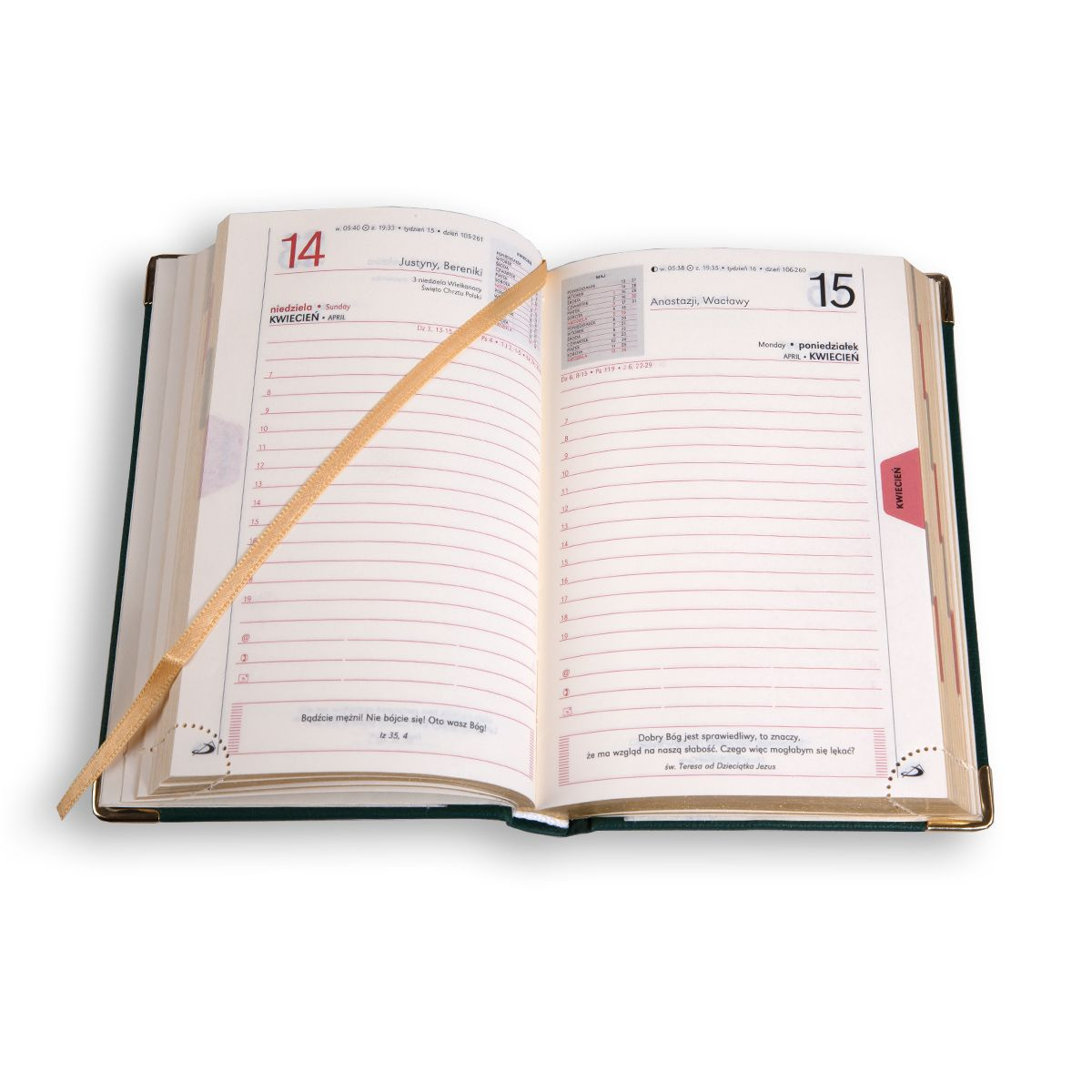 Kalendarz KOLOROWY doskonale łączy w sobie funkcjonalność z pięknym wyglądem. Dzięki niemu nie tylko dobrze zaplanujesz każdy dzień, ale też zadbasz o swojego ducha dzięki wartościowym cytatom i informacjom o liturgii dnia. To wspaniały pomocnik każdego dobrze zorganizowanego chrześcijanina.