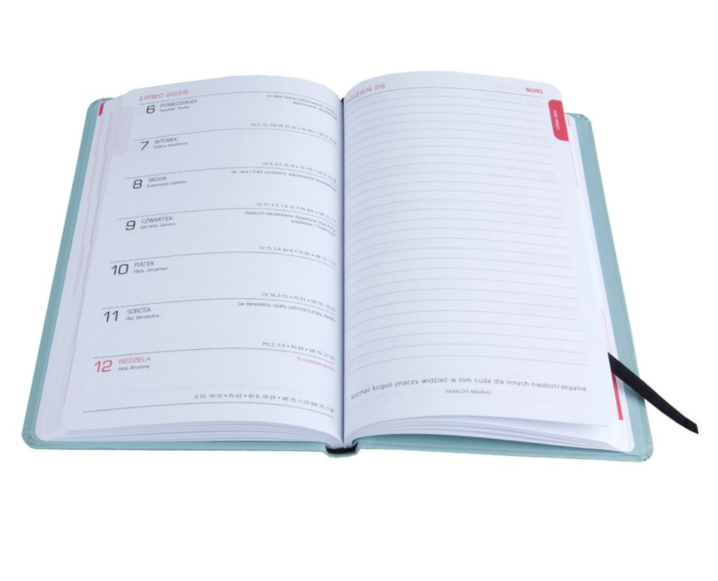 Kalendarz PLANER to połączenie funkcjonalności, elegancji i estetyki. Pozwoli Ci nie tylko dobrze zaplanować czas, ale też zadbać o swojego ducha dzięki myślom na każdy tydzień i informacjom o liturgii dnia. To doskonały kalendarz dla każdego dobrze zorganizowanego chrześcijanina.