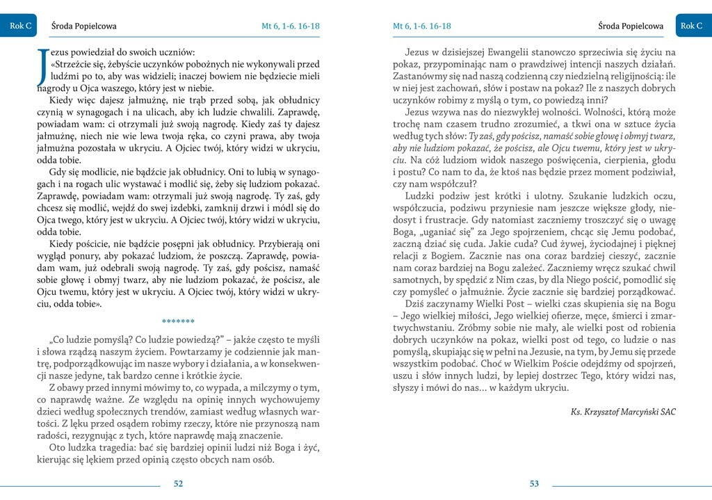 Książka zawiera ułożone chronologicznie według roku liturgicznego perykopy biblijne opatrzone komentarzem. Rozpoczyna ją Ewangelia z Uroczystości Narodzenia Pańskiego w roku C, a kończy Uroczystość Objawienia Pańskiego w roku A - obejmuje tym samym cały ROK JUBILEUSZOWY 2025.