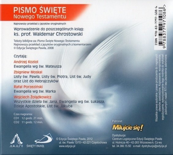 Wiara rodzi się ze słuchania – to wspólna inicjatywa wydawnicza Edycji Świętego Pawła i wydawnictwa Agape. Pismo Święte Nowego Testamentu, najnowszy przekład z języków oryginalnych, tym razem do słuchania jako audiobook MP3.
