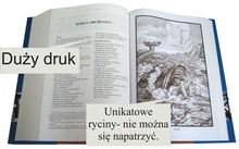 Biblia wydana w dużym formacie A-4, ze złoconymi brzegami, drukowana dużą czcionką, ułatwiającą czytanie również osobom słabiej widzącym. Ozdobiona jest pięknymi rycinami w stylu a la Dore. Posiada elegancką twardą oprawę z obwolutą.