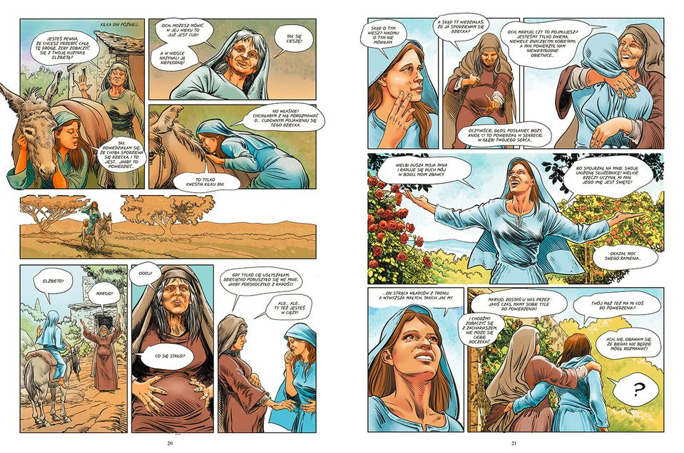 Dzięki czteroletniej pracy Oliviera Driona, ilustratora i autora tego komiksu, możemy zobaczyć to, co wiele oczu chciało widzieć, i usłyszeć to, czego wiele uszu chciało słuchać… Oto wizjonerski sposób na przedstawienie Ewangelii, przybliżający jej przełomowe momenty: od narodzin Jezusa, poprzez Jego dzieciństwo i głoszenie słowa, aż po mękę i chwalebne zmartwychwstanie. Dynamiczne ilustracje Driona odtwarzają postaci w najdrobniejszych szczegółach, mistrzowsko pokazując grę spojrzeń między Jezusem i Jego rozmówcami.
