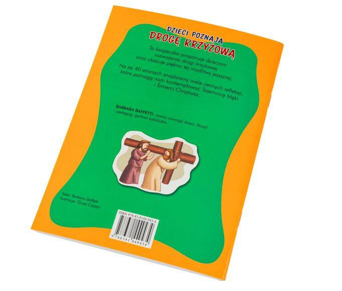 Ta książeczka prezentuje dzieciom rozważania drogi krzyżowej oraz ukazuje piękno i wartość tej modlitwy pasyjnej. Zaznajamia dzieci z podstawowymi pojęciami i zaprasza je do wielbienia Pana Jezusa.